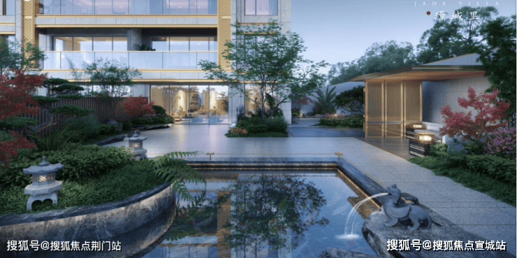 即将首发的叠墅立面,以真石材与木纹铝板为主基调,纵横穿插香槟金金属线条,形成独具特色的鎏金立面,则让整个建筑瞬间变得通透轻盈。外立面用上石材的低密,在整个杭州都屈指可数。景观园林则是取源唐代大师李昭道《曲江图》,营造七境归家礼序,将自然山水在家楼下如画展呈。