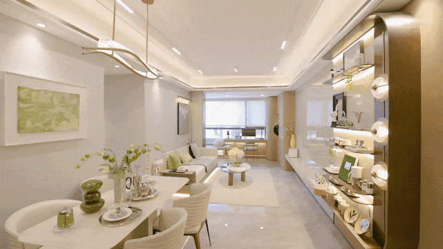 试想一下,当窗外的水系在缓缓移动,国际住宅定格在落地窗前,公园里的树影婆娑,站在落地窗前的你,心跳是不是也跟着停顿了几秒?