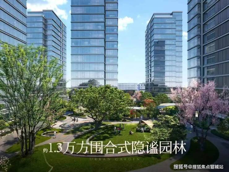 整个园区以围合式布局展开,七幢建筑借鉴中国古典园林的精髓,最大楼间距达到了63米,使得每栋楼都能享受到270°的开阔视野,仿佛是一座座隐匿于花园中的岛屿。