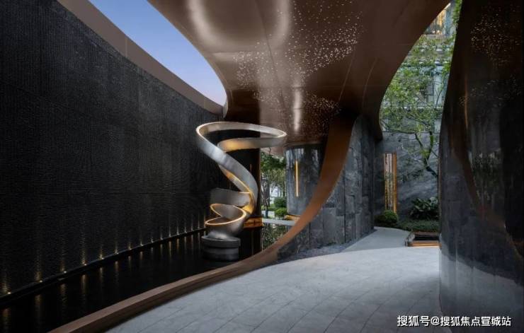 凤咏朝阳的北入口都很讲究,就像下一秒要拥人入怀的臂展——凤咏朝阳用浓烈的仪式感打造了两大主入口,用的都是星级酒店的做法,让我们不自觉就会调整入户前的情绪。重头戏更在大门之内,他们把江南四大名园的造园手法,运用到了凤咏朝阳这座「游园式大平层」的园区中——