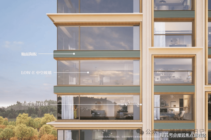 实现上海转角连续约12米无柱全景舱户型,部分户型270°转角飘窗以及全景舱户型的落地,贯彻「公园观礼台」主线,将景观充分揽入室内。
