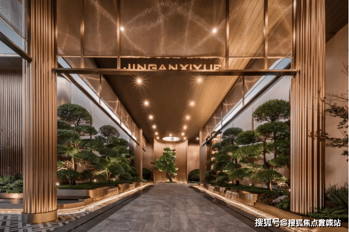 建筑立面采用新海派风格,三段式经典格局,香槟金铝板横向线条+咖色石材基座,通过材质拼接还原摩登气质。这种立面颇具辨识度,也更历久弥新。