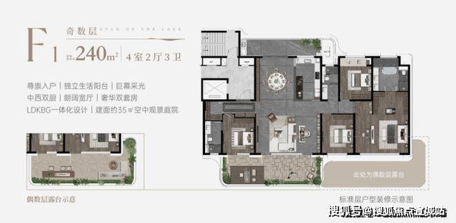 户型信息:主力户型为 150-240㎡的四房,包括 150㎡的四室两厅三卫、175㎡的四室三厅三卫、220㎡的四室三厅三卫、240㎡的四室三厅三卫。部分户型配备约 270° 弧形转角露台,环幕视野,尽揽太湖风光。