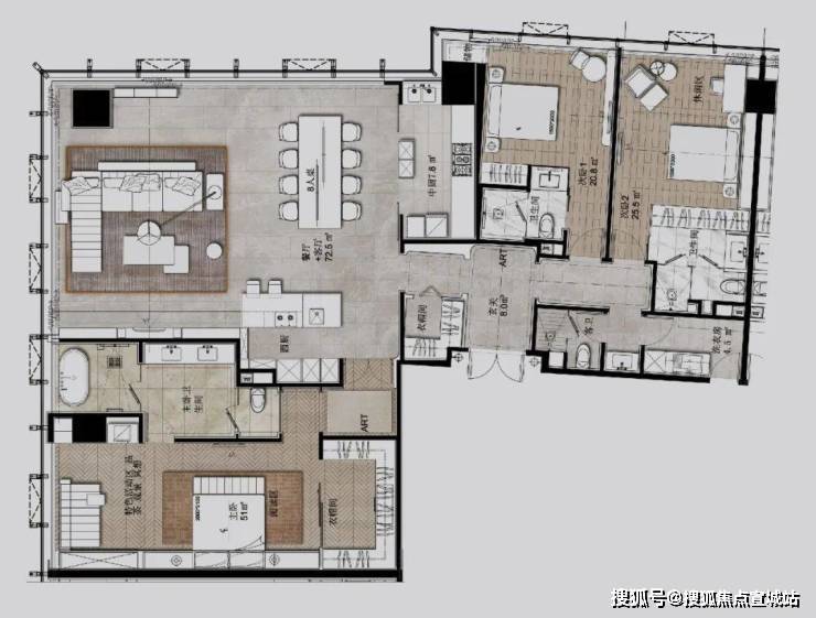 大平层作不仅拥有单纯的居住属性,更是城市封面、身份认同、自我实现的标志性产品。为各界高净值人群提供精神与空间的首席话语权。