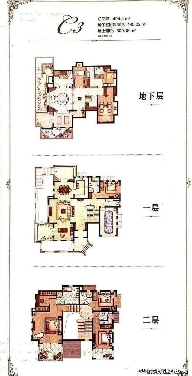 C3地上309㎡(赠送)下沉庭院185㎡花园500㎡