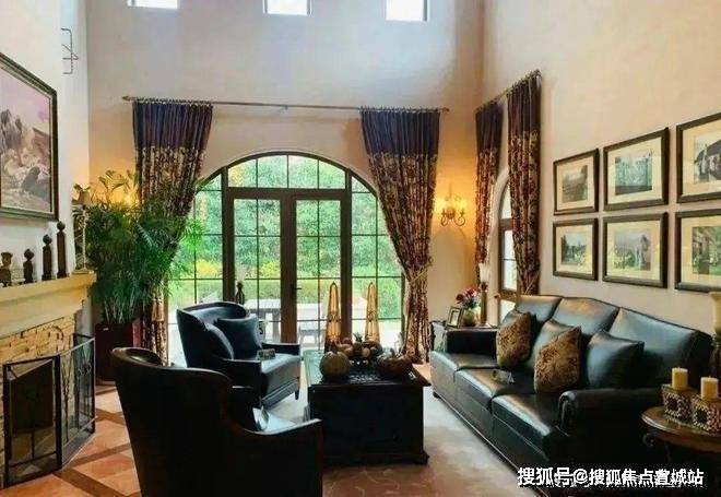 1、进门处的门厅设计成古堡的形状,挑高达9米多,视觉冲击力非常强;
