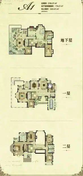 8、地下室采用下沉式庭院设计西面采光非常的良好,其余每个房间拥有独立采光井,光照理想;地下室功能齐全,面积分割合理.包括有独立的地下会客厅,酒吧间,西式操作厨房、卫生间,卧室、影音室、保姆房间、户外庭院.