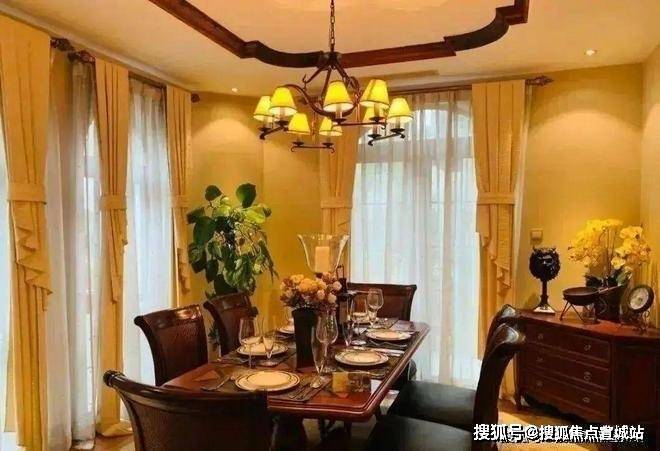 4、餐厅设计成六角窗,还有朝南设计,整个餐厅阳光明媚,厨房、起居室、书房设计全部朝南,非常宜居的生活,因为家人的主要活动的空间和时间基本集中在这几个区域.