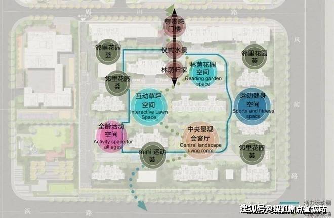 五庭:林荫花园、互动草坪、中央景观会客厅、全龄活动、运动健身空间;