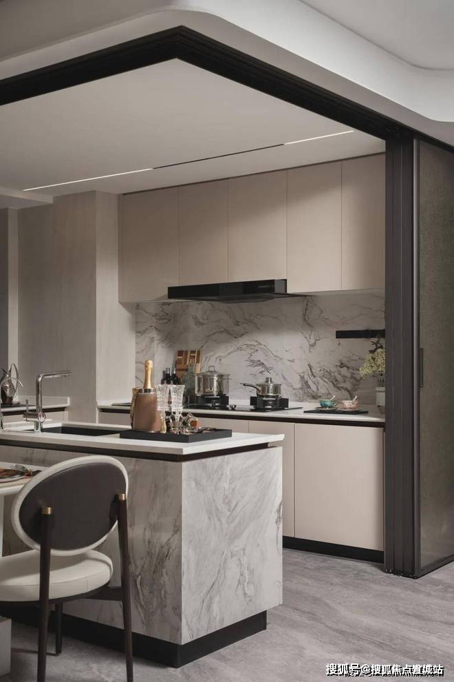 集收纳空间,隔断空间、交流空间于一体,厨房不再是独立的烹饪空间,不仅让空间视觉更开阔,更是温馨的社交场所。