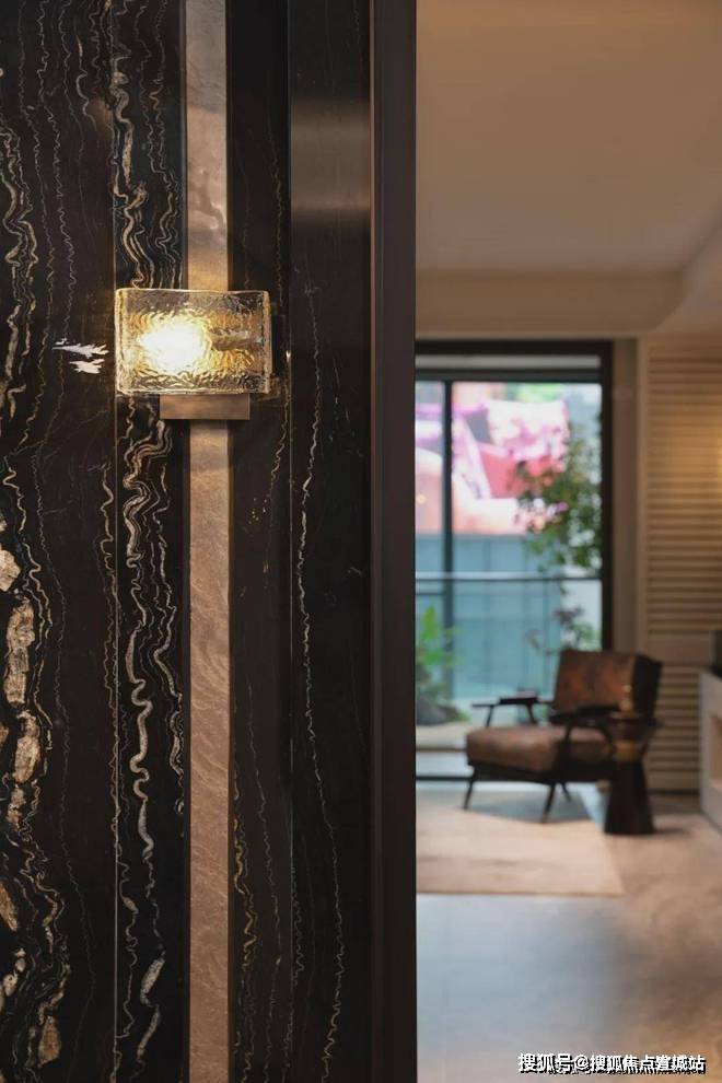 The ground floor lobby, Brazil imported stone Thames stone and light texture stone to form a visual collision, combined with gold liquid metal paint and dark wood finish, to create a low-key low-key tone, in addition to the ground lobby, Yuexiu Jingan Tianyue basement is also amazing, the unit drop-off area to create a bright light hall, so that owners driving home can also feel the warm welcome.