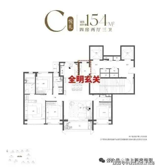 如果说建面约130㎡是“精致改善”的范本,建面约154㎡正四房则是“奢居理想”的实景答卷。