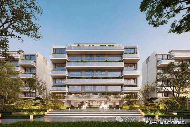 ※栋式天地叠院立面:现代简雅立面勾勒太湖水韵纹脉线条,刷新苏州天际线