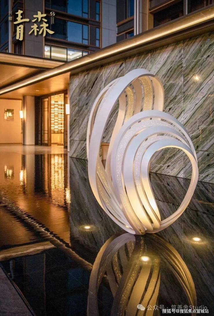 113米恢弘入口,三重归家礼序,于都会之中,邂逅无尽自然之境。首进院:酒店式归家门庭;次进院:森林溪境漫步游园;末进院:定制酒店式归家入户。主入口采用天然石材+艺术雕塑堆砌大气高级感入口。