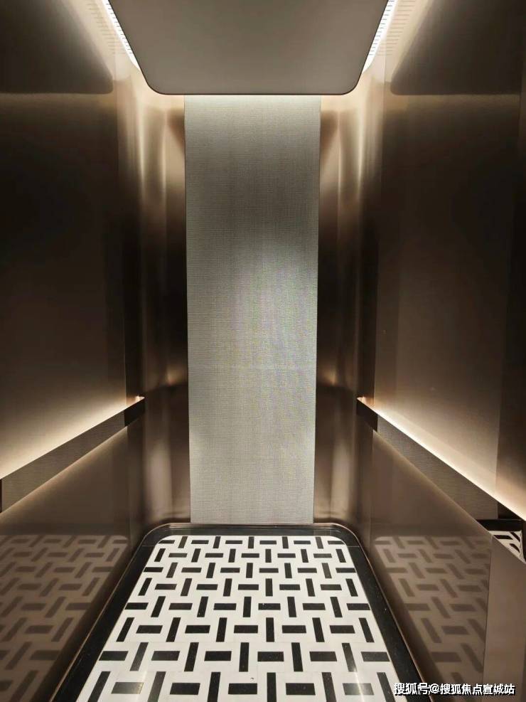 更值得一提的是,项目打造的电梯轿厢都比一般的电梯高,空间感打造上相当出彩,搭配无主灯悬浮吊顶与金属墙面设计,海派归家仪式感拉满!