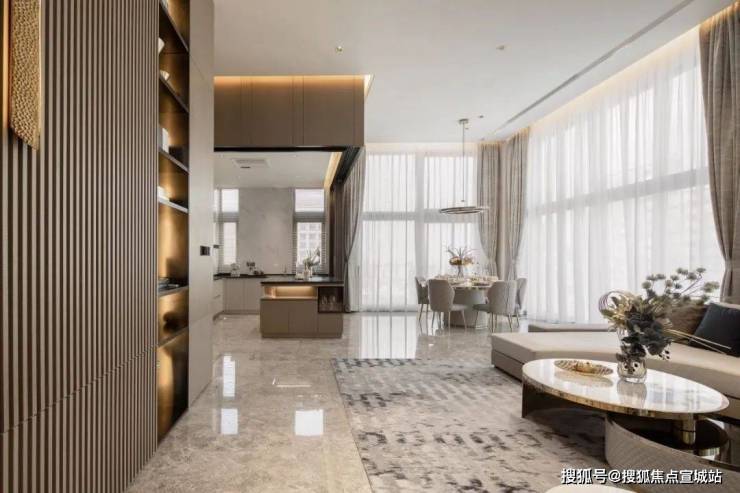 本次交付的是155㎡和118㎡的跃墅户型。步入155㎡精装户型,“270°广角采光真是喜欢,当初选这个户型就是看中这个采光,视野真当好!”业主感叹道。客餐厅约4.79米挑空,通透明亮,广揽城市盛景,甚有风范。