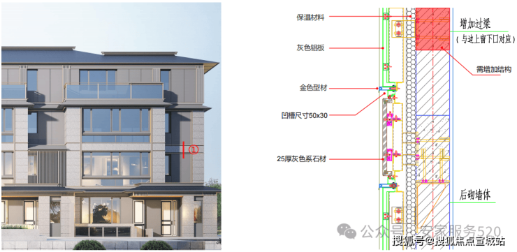 奢隐造诣:延续宋人“技近乎道”的匠心精神,以印度宝蓝石材为基底,四面干挂浅灰色石材、深灰色铝板,雕琢低调奢华的「四华盖」。