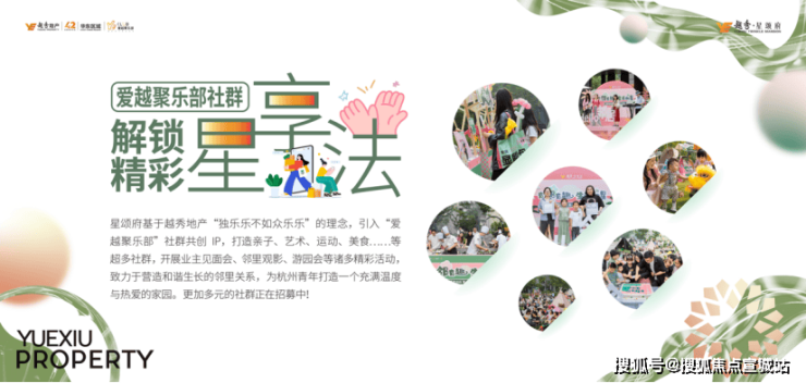 越秀星颂府深谙"独乐乐不如众乐乐"的理念,倾力引入"爱越聚乐部"社群共创IP,打造涵盖亲子、艺术、运动、美食等多维度的社群体系,通过业主见面会、邻里观影、主题游园会等丰富多彩的活动,让来自五湖四海的邻里在此相识相知,营造和谐生长的社区氛围。