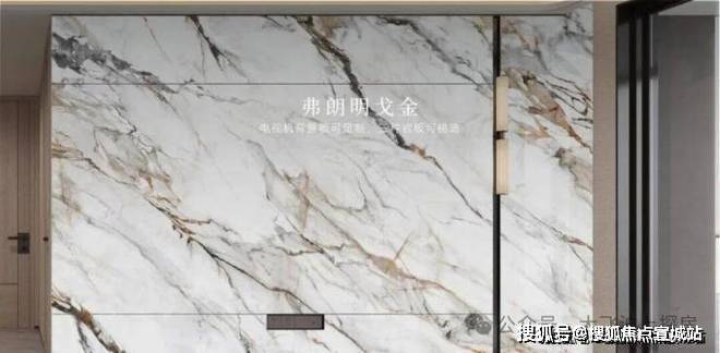 充分考虑业主的个性化需求,在电视背景板提供了新潘多拉、云中翡翠、弗朗明戈金三种结晶釉面岩板选择,成本更高,施工难度也更大。