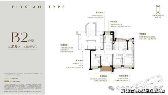 约118m²四房两厅两卫(B2户型)