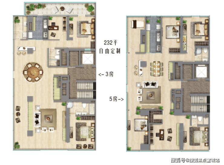 只要预算充足,住户可以根据自己的需要随意组合需要的面积。从建筑面积约250-1000㎡可以灵活分割、组合。从整层贯通的超级大平层,到上下层打通的空中别墅都可以轻松满足。