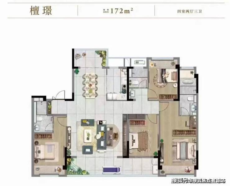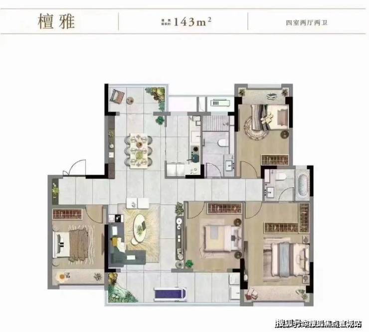 主力户型:均为四居室大户型,适配改善需求。其中建面约 143㎡为四房两厅两卫,四开间朝南,南北双阳台一体化设计,主卧套房带独立卫浴与步入式衣橱,南北卧室均配飘窗;建面约 172㎡为四房两厅三卫,是进阶户型,拥有约 9 米南向双联阳台和约 6 米会客横厅,双套房设计适配三代同堂;建面约 196㎡为四房两厅三卫,五开间朝南,次卧带独卫,客厅配备 “L 型” 观景阳台,兼具南向和西向开阔视野。