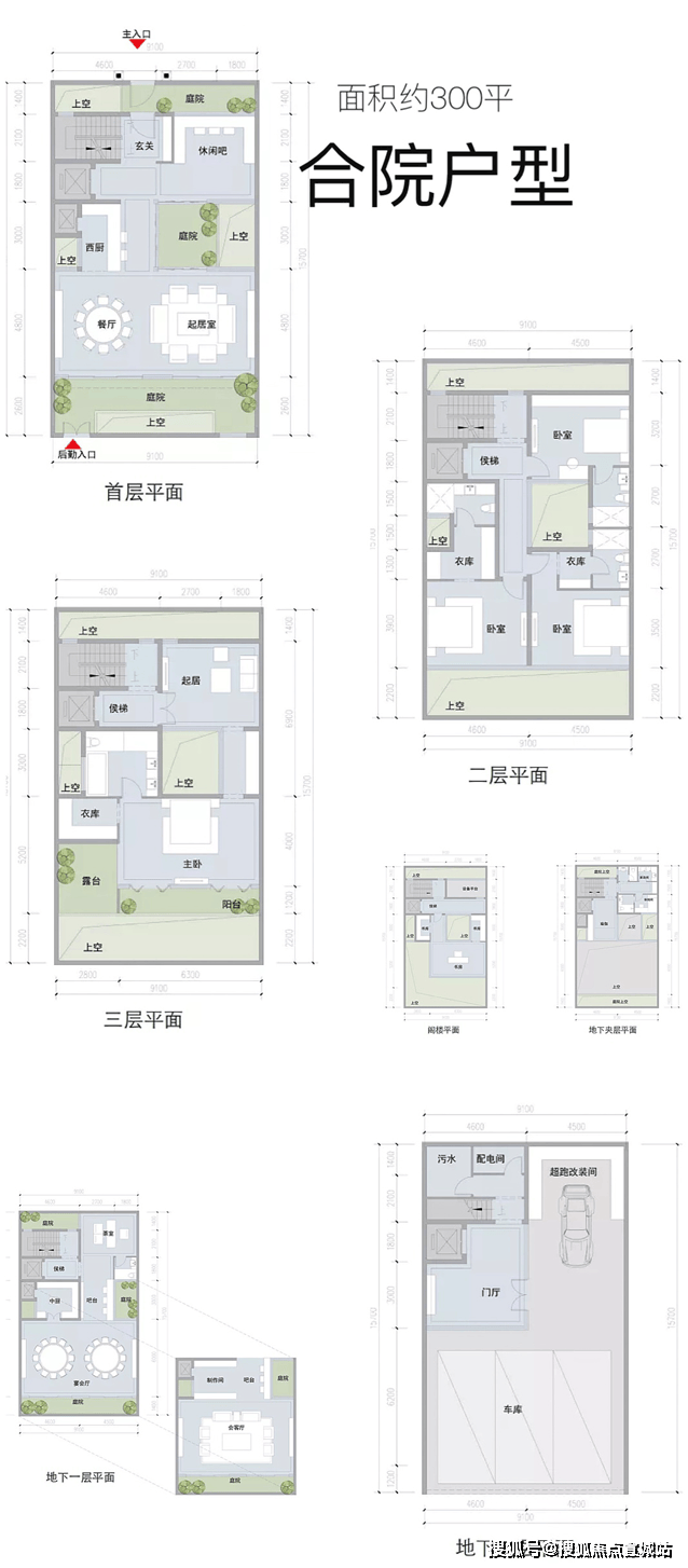 ·风貌联排合院151套(建面约250-1200㎡,主力户型约300-500㎡)
