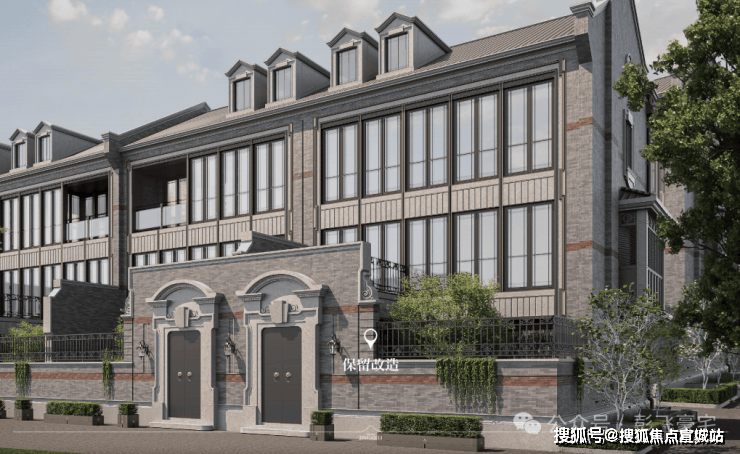 比如,典型的石库门和独特的排窗样式被很好地传承了下来;但与此同时,水砂石立面提升成了更高级的石材,并以此融入了地块中本就浓烈的欧式建筑风格,让保改建筑也以更适合当代的形制新生。