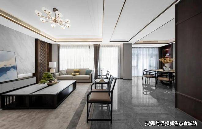 此次公开的两大样板房,是璟畔和院建面约220㎡、约240㎡院墅户型,室内设计风格上将现代的时尚简约,与中式的轻奢雅致有机糅合,让空间呈现出了无与伦比的美学高度.