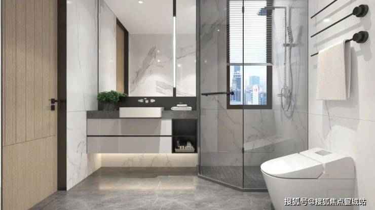 项目承袭了府系楼盘基因,依然是融创标志性的高级灰立面、横向阳台玻璃飘带,洗练且时髦.银色的L型大折板一折到底,颇有几分杭州壹号院的神韵.