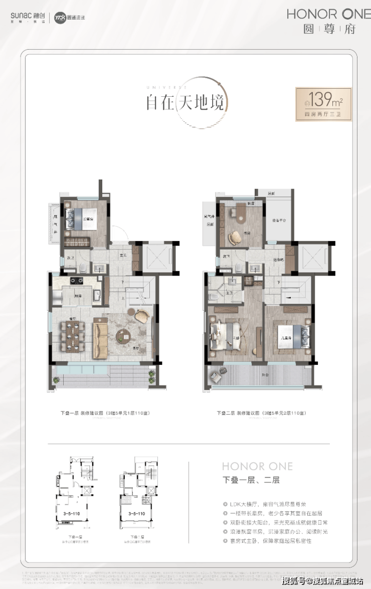 户型一贯可圈可点,叠墅约139㎡下叠双开间朝南,开间大,采光充足.书房、迷你吧、卫浴豪华配置想象,带你体验超大尺度的空间感;南面带花园,有天有地,可以种花种草,怡然自得,享受真正的“桃源生活”.