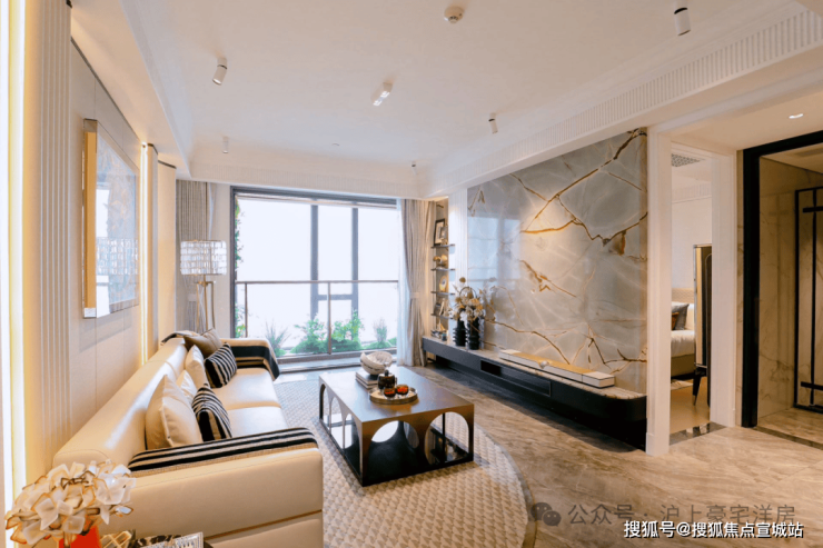 公区设计,巧妙融入百乐门印象、沪西电影院等文化元素,将过去记忆植入场景。嘉佩乐酒店式门庭、琉璃光廊式车库、海派人文哲思花园,以“深度酒店化”营造归家艺术之旅。