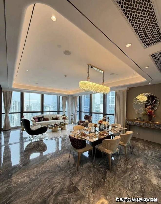 建筑设计:采用ArtDeco风格设计,外立面选用卢浮宫同款石材搭配全景落地窗,质感厚重且通透;12米挑高精装大堂,地面铺装意大利卡拉卡塔金大理石,尽显奢华气派;层高约3.6米,空间开阔舒适。