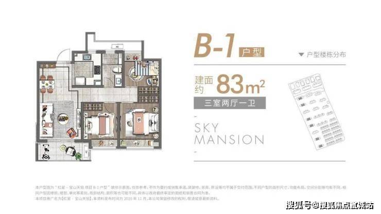 宝山天铂项目推出建面约83㎡、89㎡的高层及洋房户型,均为三房设计,能够满足不同家庭结构的居住需求。建面约83㎡的高层户型为三房两厅一卫,建面约89㎡的高层户型为三房两厅两卫,整体设计方正,南北通透,拥有超阔南向面宽,餐客阳台一体设计,大大提升了空间的视野和明亮度,功能分区明确。
