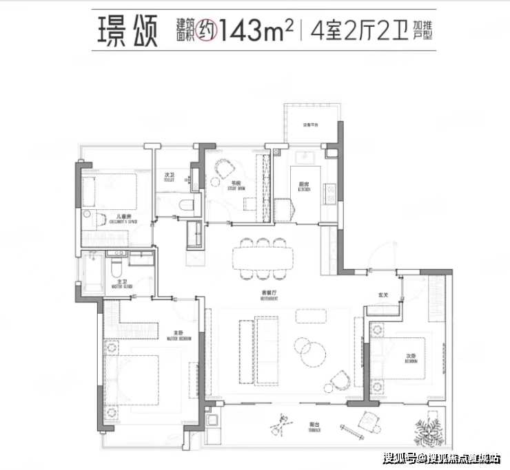143㎡四房:总价约357-500万元,2梯2户设计,得房率76-83%