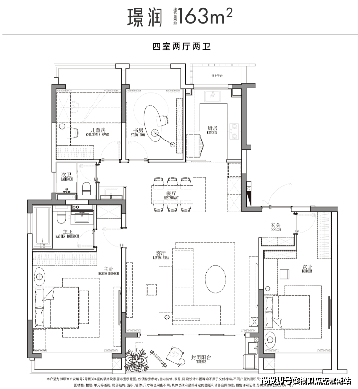 163㎡四房:总价约407-500万元,南向16.4m大面宽,9.2m宽境阳台