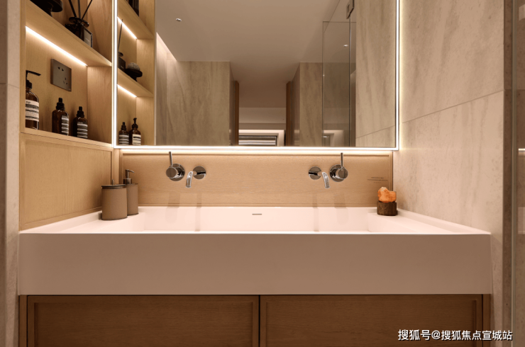 另外全屋收纳柜/衣柜全部为交付部分,基本做到了拎包入住,而且柜体尺度、收纳空间十足,是真正适合居住和生活的好房子!还采用成本高昂的大规格瓷砖,大量减少墙面拼缝,呈现顶级星级酒店卫浴的整体感,才有现在样板间的精装效果~