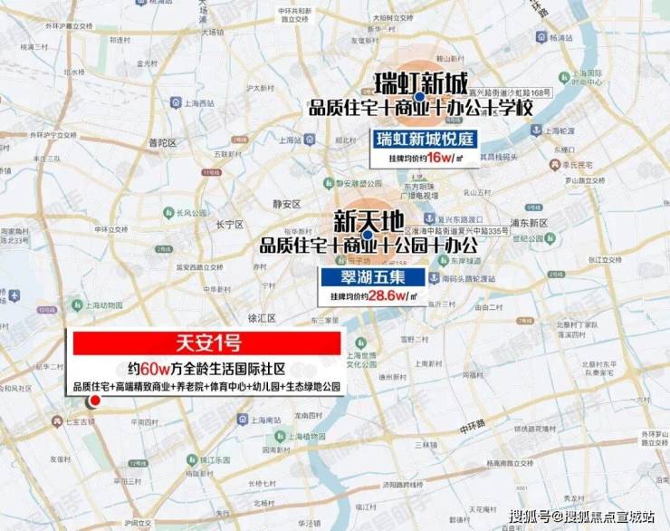 聚焦中环沿线来看,靠近中环的大宁、北新泾土拍楼板价破8w+/㎡,新房售价将达到13-16w+/㎡的水平,同样中环附近的「天安1号」以10w/㎡以内的均价,堪称中环附近价格洼地的存在!