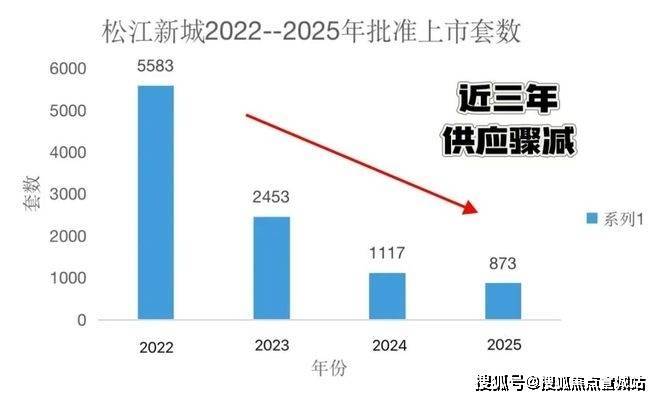 2022年,松江新城的新房供应为5583套新房。随后逐年走低,2023年2453套,2024年1117套,到了今年仅有837套。
