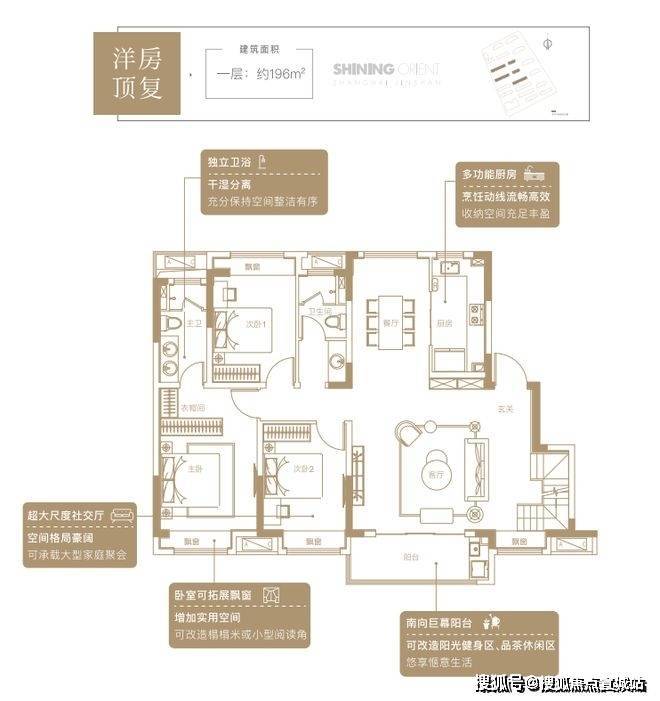 洋房顶复:建面约196㎡