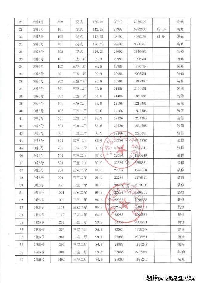 项目一房一价表