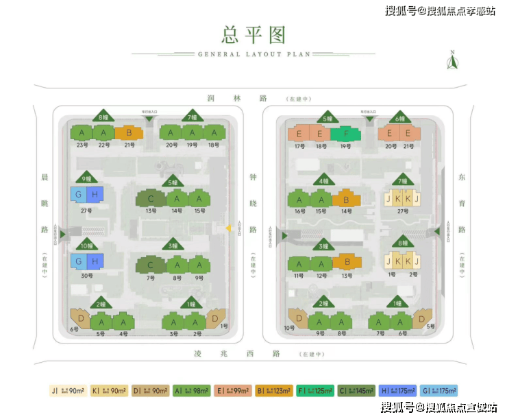 根据设计方案显示,两幅住宅地块(15号、17号)共计建造16栋8-25层住宅楼以及相关的配套实施。规划住宅1179户。