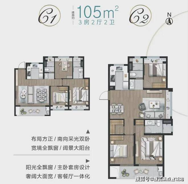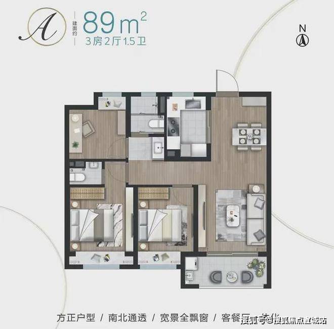 户型:均为三房,包括 89㎡刚需三房、99㎡舒适三房、105㎡三房以及 127㎡改善三房