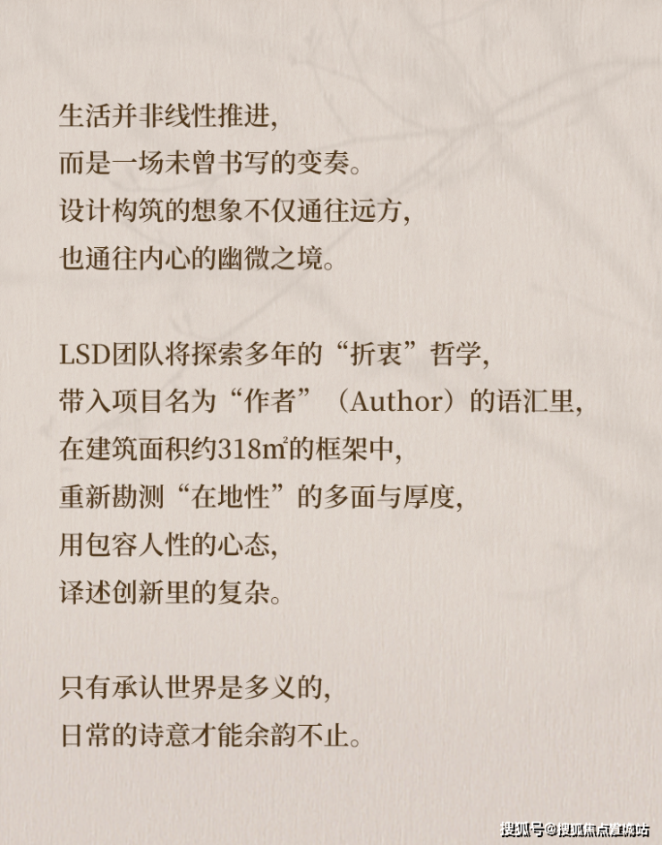 这个世界,它不完全是理性的。我们需要科技的进步,也需要艺术的存在。艺术可以帮我们跨越灾难,帮我们带离倦怠,那些温暖的、美好的东西其实是依然根植在每个人的内心。很多时候我们过于偏平,偏于理性,忘掉了感受,忘掉了精神。这个时候就需要我们这些做设计的人,通过制造体验,让别人的天平得以被调动,让大家知道原来豪宅也一样可以慰藉人心,更重要的是慰藉自己。做到这一点,那我觉得这件事情就是成功。设计应该带去欣喜,