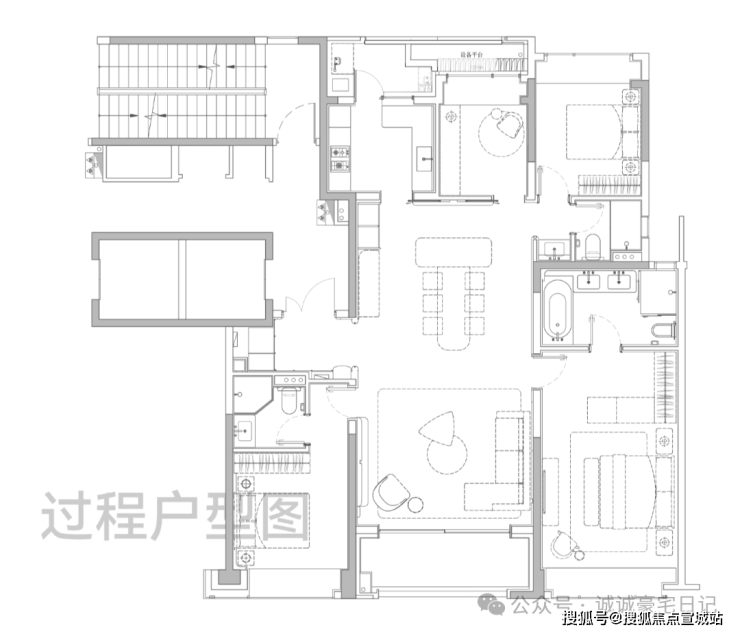 主卧配置步入式衣帽空间、双台盆+大浴缸主卫。