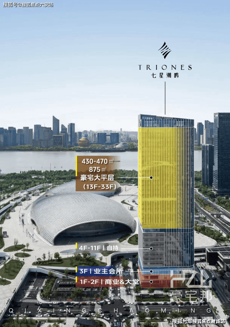 城市封面资产:占据奥体“北斗七星”地标群天枢位,直面钱塘江与“日月同辉”地标,270°环幕江景收纳莲花碗、杭州之门等城市地标,形成杭州新千年中轴线的物理与精神交汇点