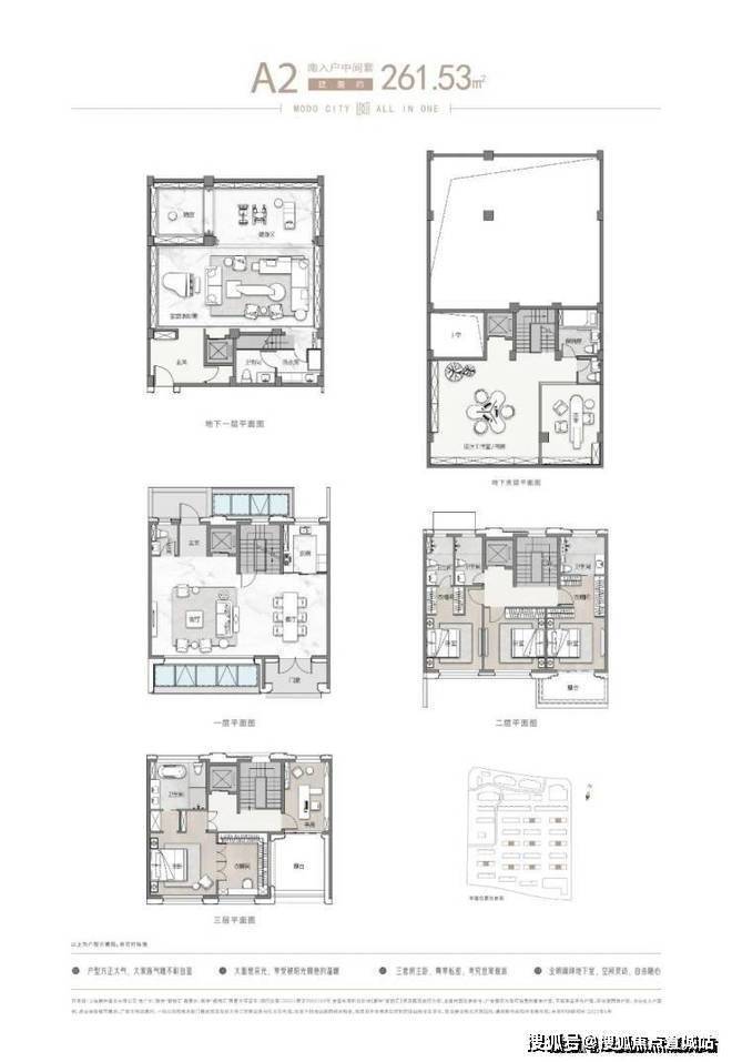户型细节:商业联排别墅为地上三层地下一层,地上一层层高 3.6 米,二、三层层高均为 3.4 米,地下层高 5.4 米;部分户型面宽约 10.4 - 10.7 米,带 90 - 300㎡南北双花园,还附赠内部电梯,客厅配有 7 米落地窗。