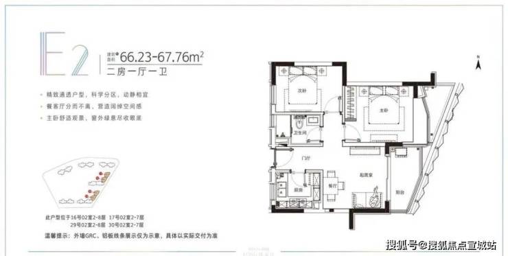 建面约78-91.22平米的小户型,两房两厅一卫的格局,非常适合年轻刚需家庭上车。