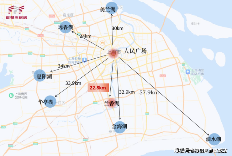 更重要的是,它的地段也无可比拟,从地图上能够看出,兰香湖是距上海市中心(人民广场)最近的湖系资源,凭借上海少见的一线湖景特质,也为兰香湖2号赋予了稀缺的价值内涵。