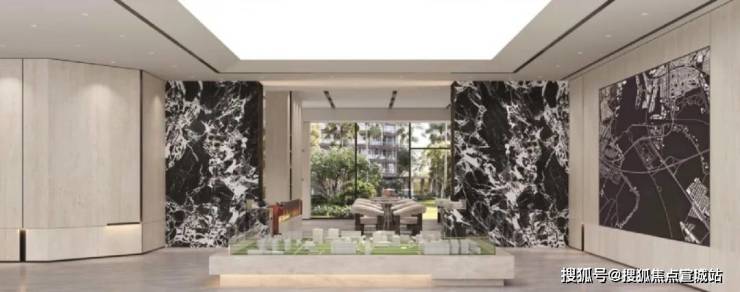 售楼处设计源自伦敦与上海半岛酒店的优雅复古,将现代极简主义美学运用到极致。沙盘区景墙将取材Celine御用石材宝格丽黑大理石,以永不过时的摩登气息,点睛空间的奢华精致。